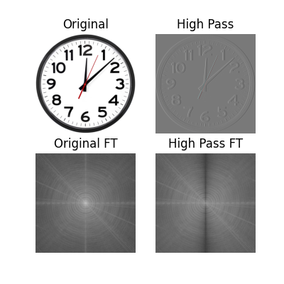 Note that after applying the high pass filter, the values of some pixels might become negative. The high pass filtered image above has been linearly rescaled to $(0, 1)$ to be displayed normally. After the filter, the high frequency components of the image remains largely the same, while the low frequency components are greatly muted.