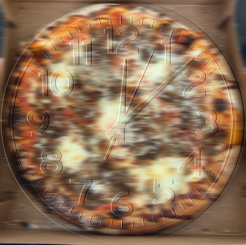 If we swap the role of the pizza and the clock in the example above, we would get the following result.