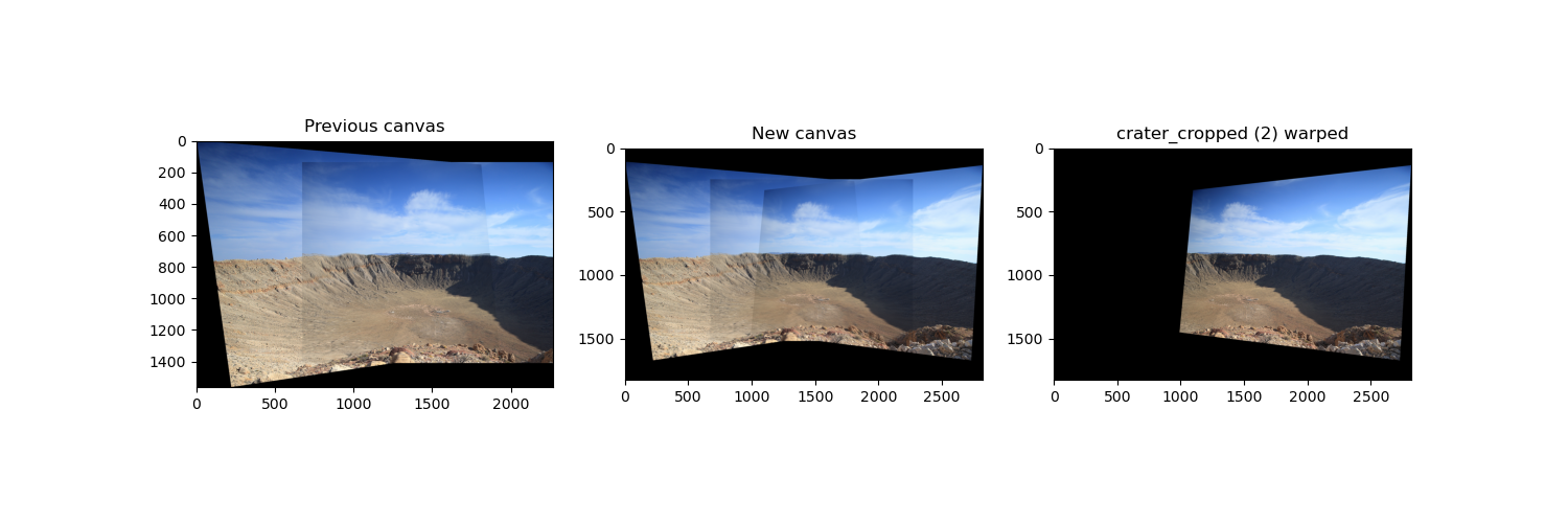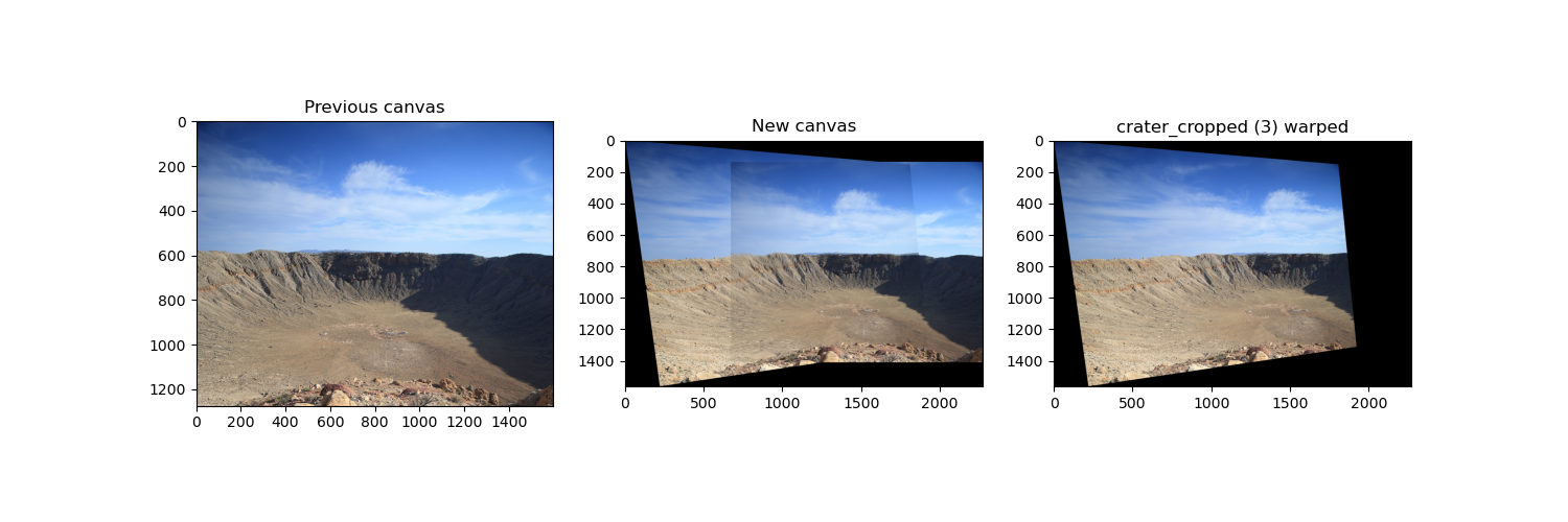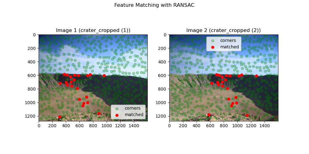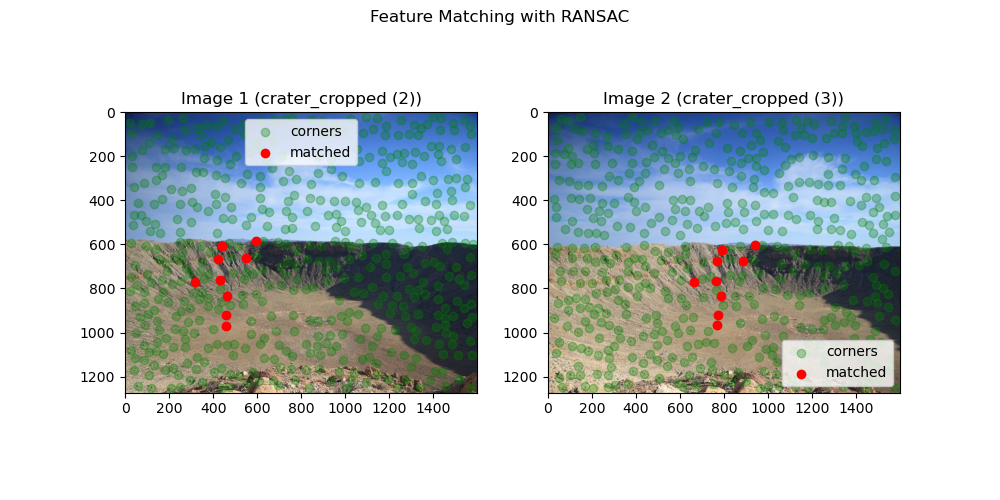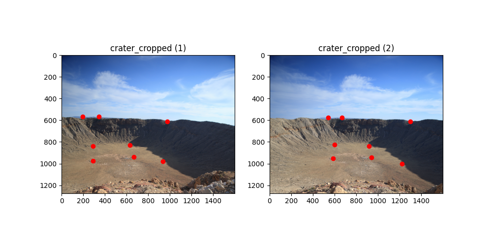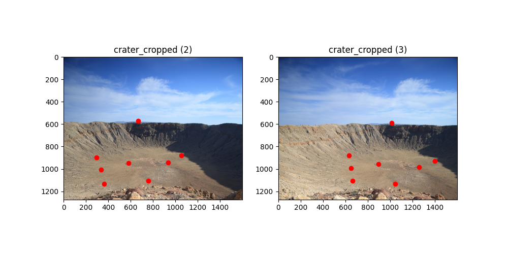 As an example, below are the manually selected feature pairs of the Meteor Crater photos, with