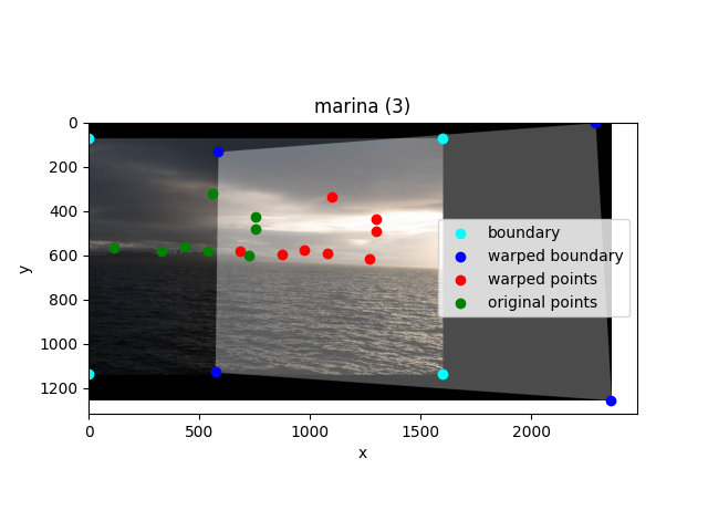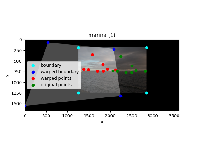 Remember that the middle image, marina (2), is the reference and therefore doesn't warp!